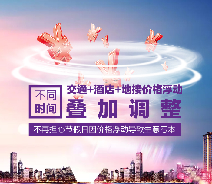 價格更新軟件再添雙翼,浮動價格多個時間段可以疊加調整,滿足不同時間段,交通,酒店,地接價格的不同浮動需求,不再擔心節(jié)假日因價格浮動導致生意虧本了,特別的功能給特別的您!。